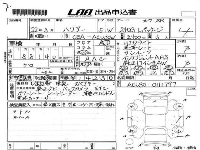 2010 TOYOTA HARRIER ( LEXUS RX300) 240G L PACKAGE