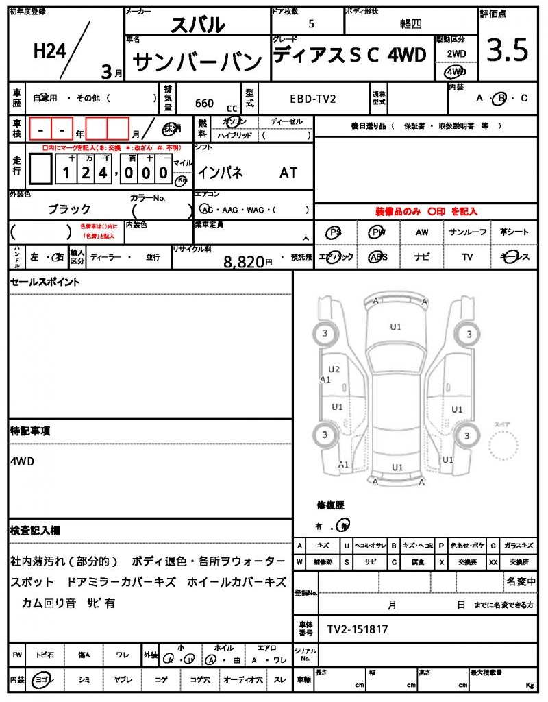 2012 SUBARU SAMBAR VAN