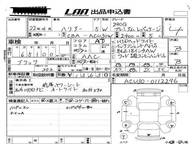 2010 TOYOTA HARRIER ( LEXUS RX300) 240G PREMIUM L PACKAGE