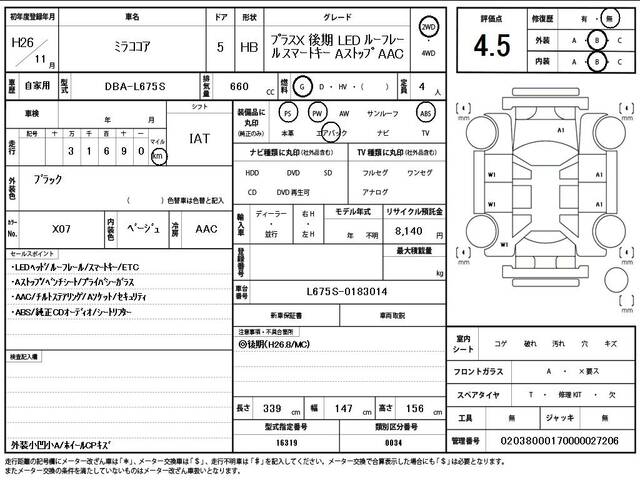 2014 DAIHATSU MIRA COCOA