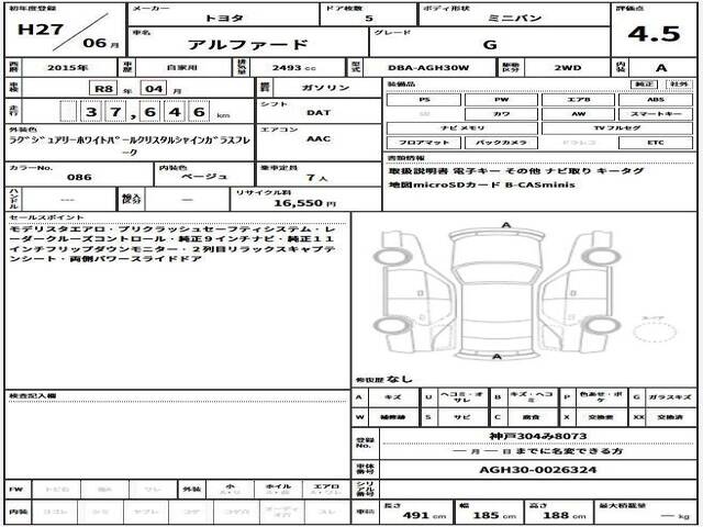 2015 TOYOTA ALPHARD 2.5G