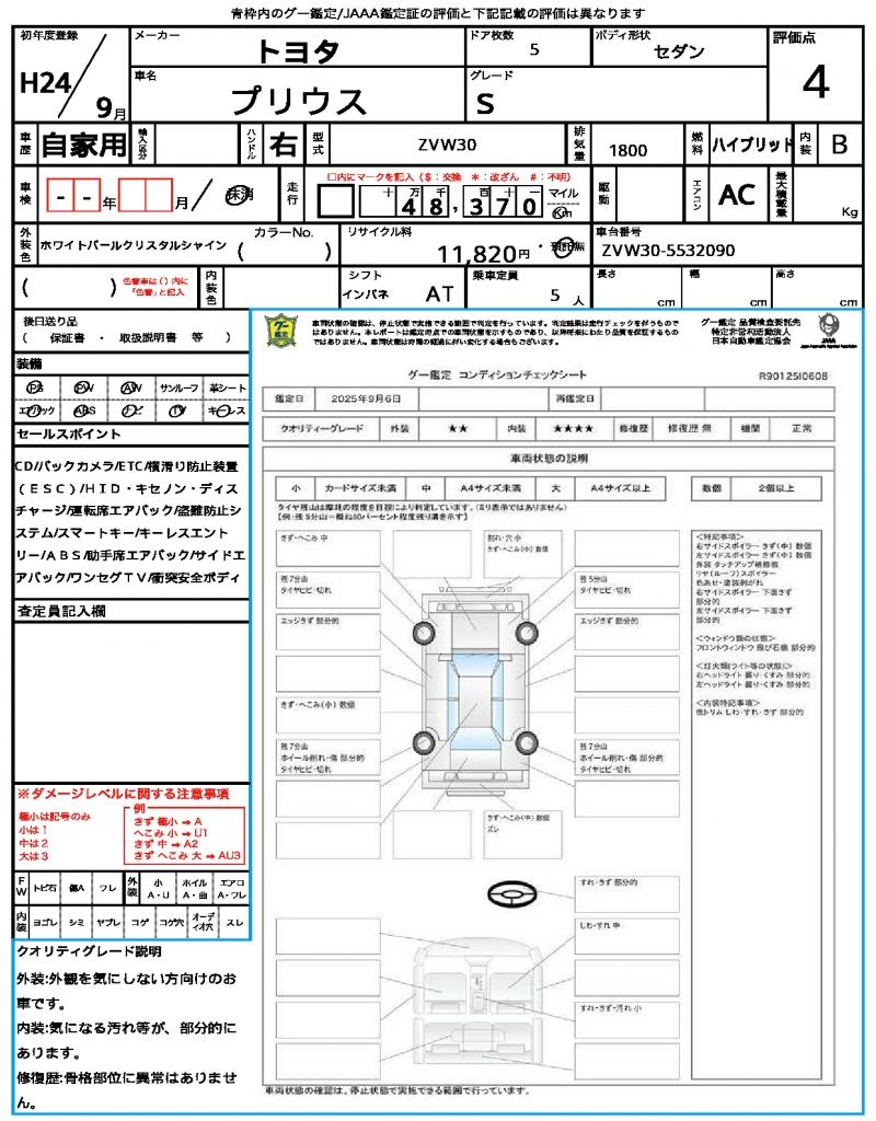 2012 TOYOTA PRIUS S