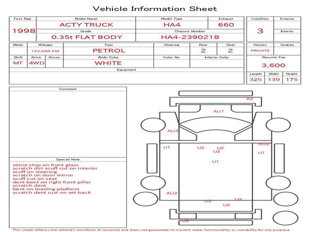 1998 HONDA ACTY TRUCK 0.35 ton
