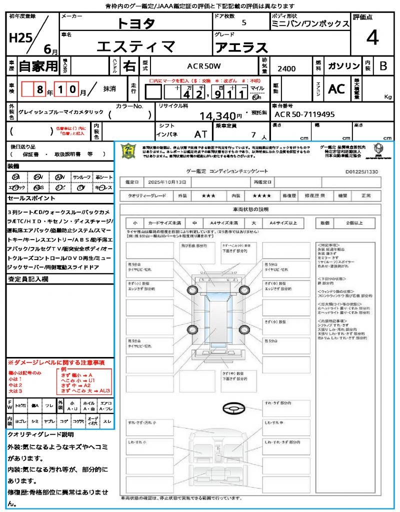 2013 TOYOTA ESTIMA ( PREVIA) AERAS