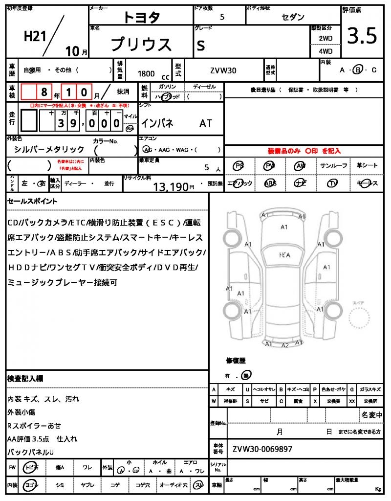 2009 TOYOTA PRIUS S