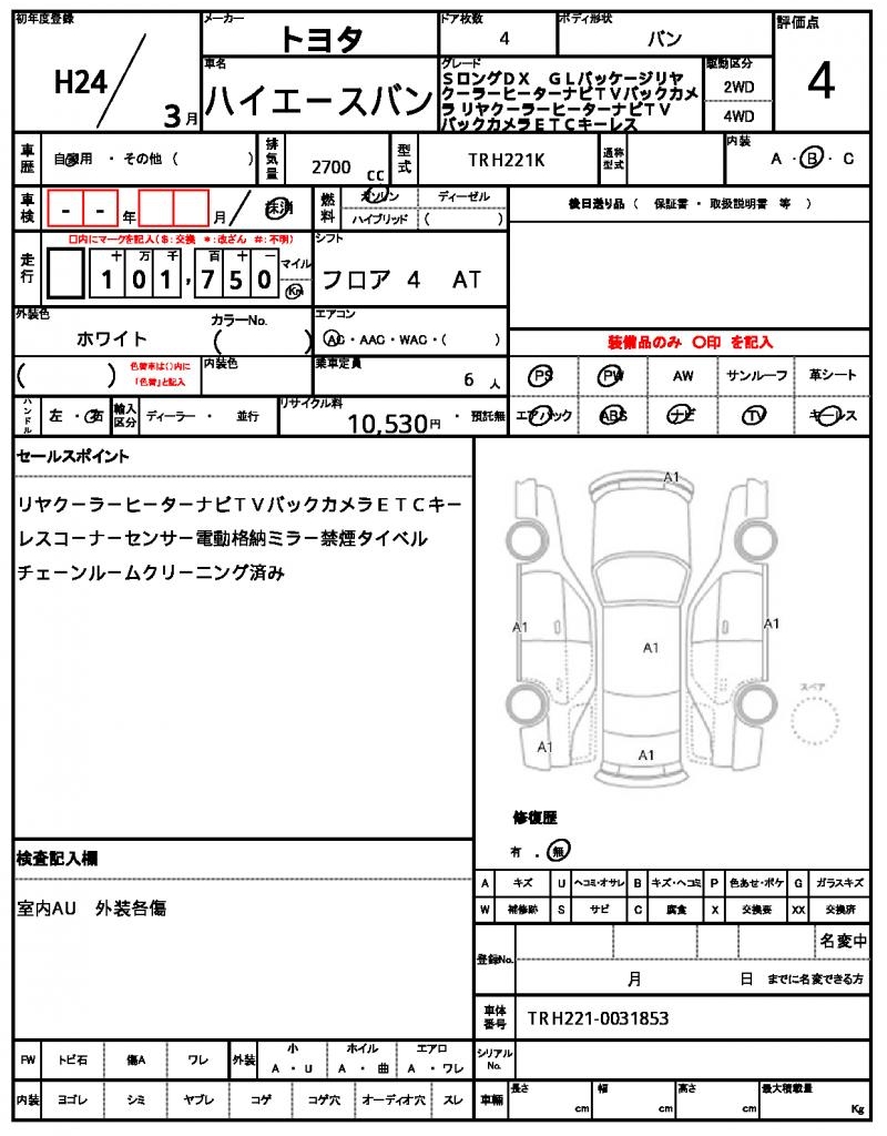 2012 TOYOTA HIACE VAN