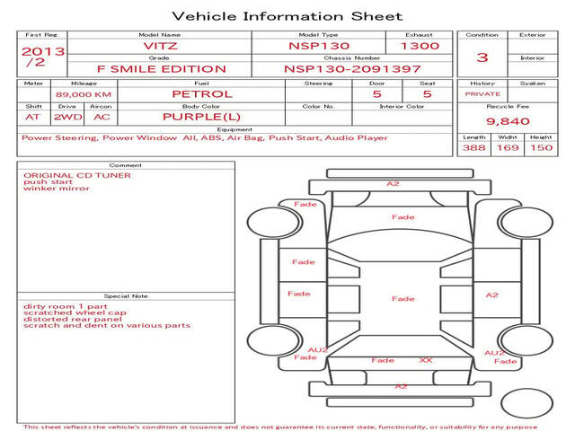 2013 TOYOTA VITZ ( YARIS) F SMILE EDITION