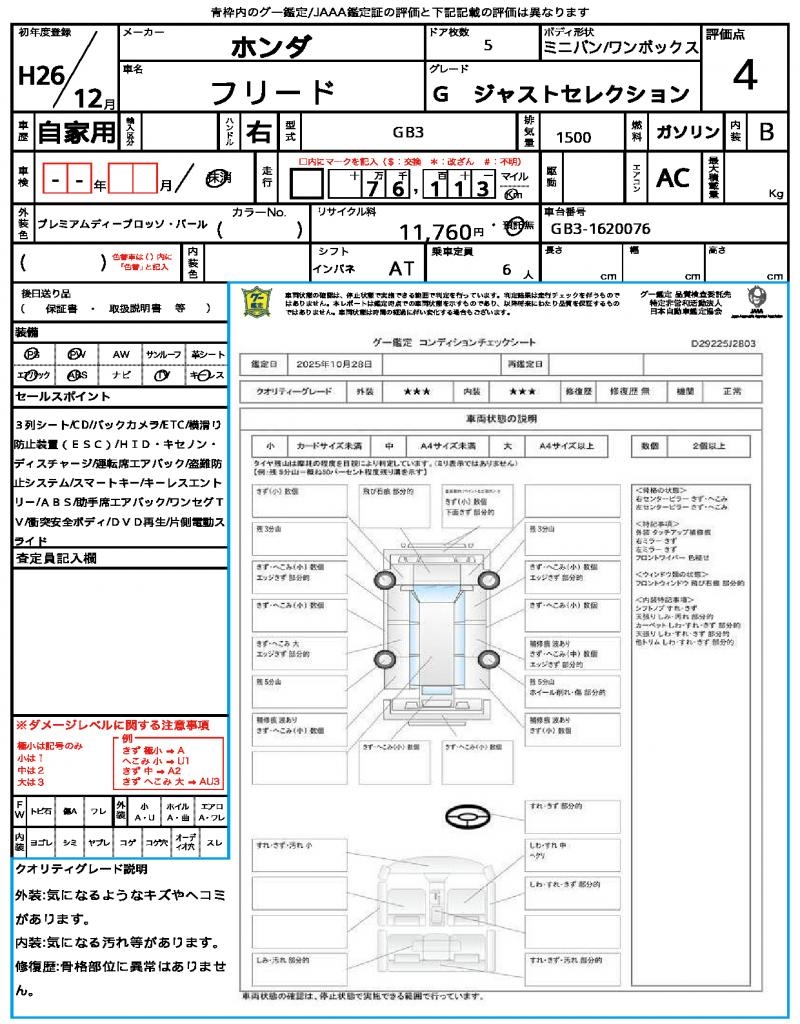 2014 HONDA FREED G JUST SELECTION