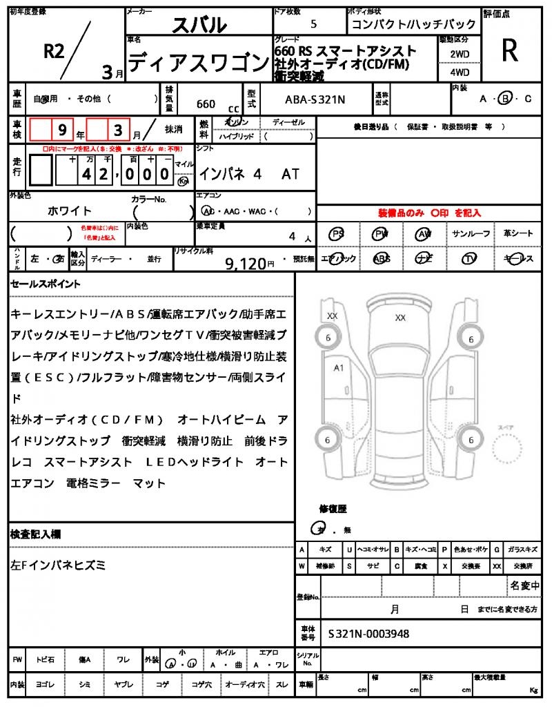 2020 SUBARU DIAS WAGON