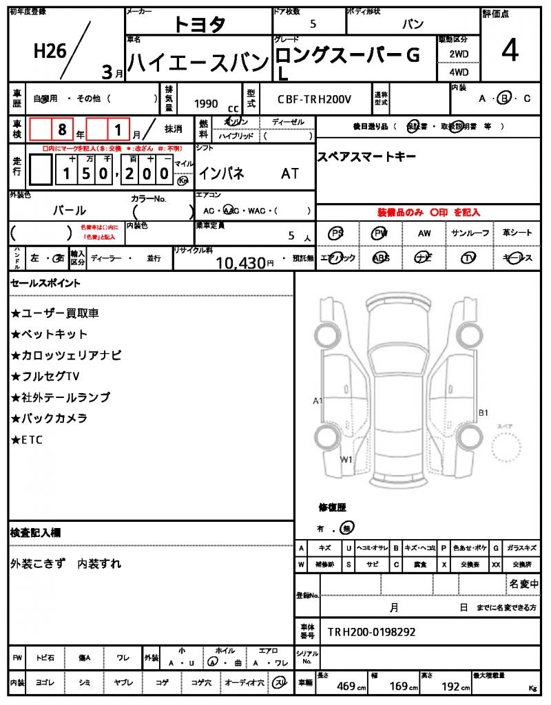 2014 TOYOTA HIACE VAN LONG SUPER GL