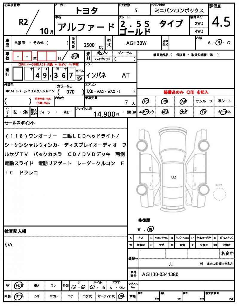 2020 TOYOTA ALPHARD 2.5 TYPE GOLD