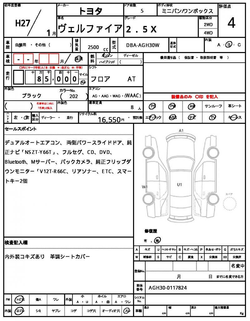 2015 TOYOTA VELLFIRE 2.5X