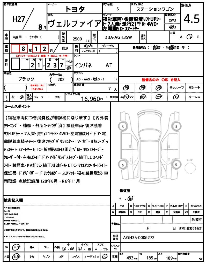 2015 TOYOTA VELLFIRE