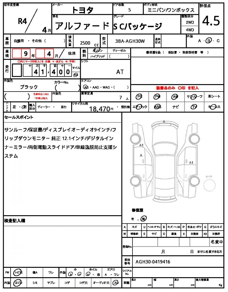 2022 TOYOTA ALPHARD S CPACKAGE