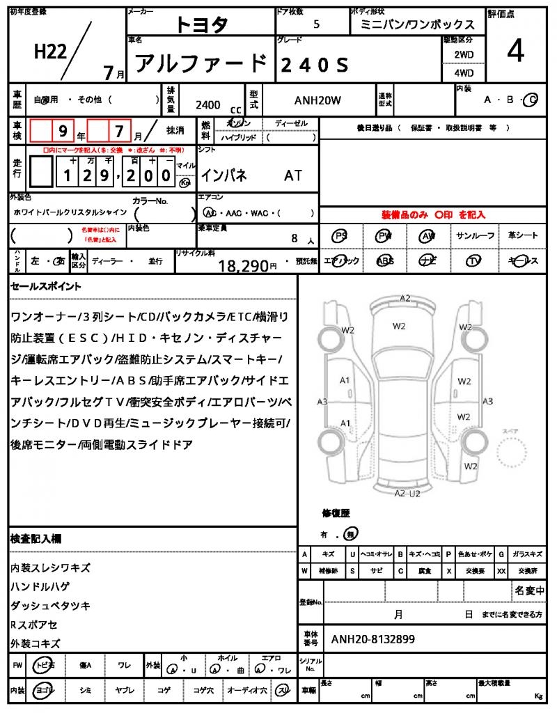 2010 TOYOTA ALPHARD 240S