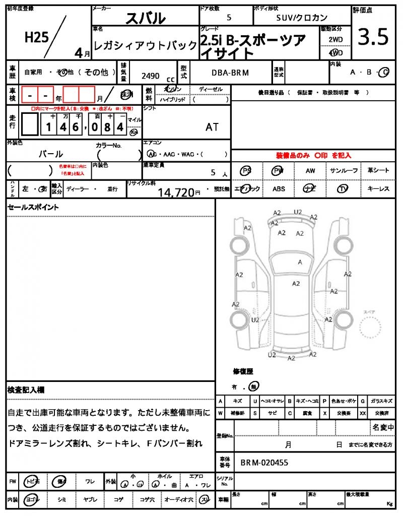 2013 SUBARU LEGACY OUTBACK