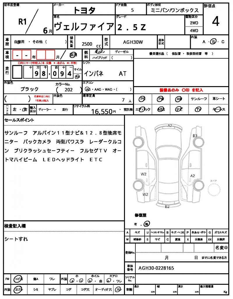 2019 TOYOTA VELLFIRE 2.5Z