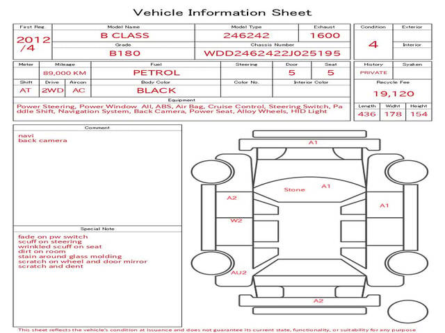2012 MERCEDES BENZ B CLASS