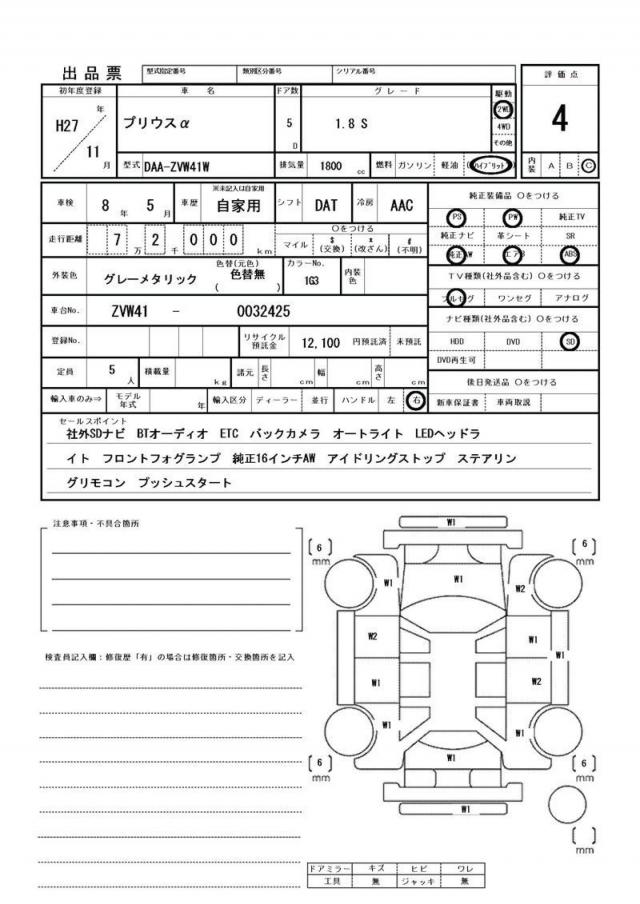 2015 TOYOTA PRIUS ALPHA S