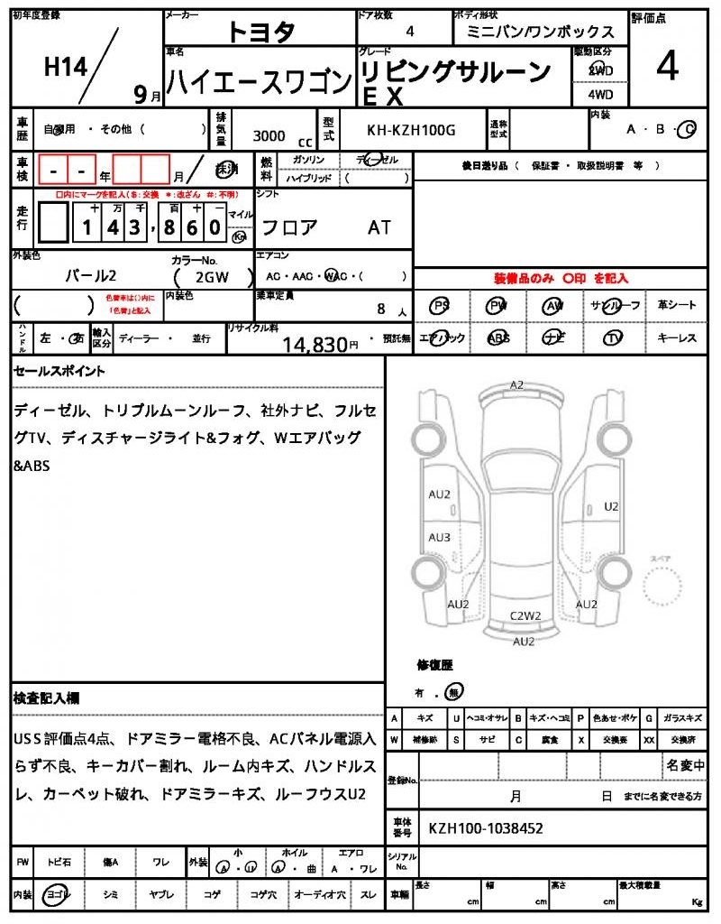 2002 TOYOTA HIACE WAGON LIVING SALOON EX