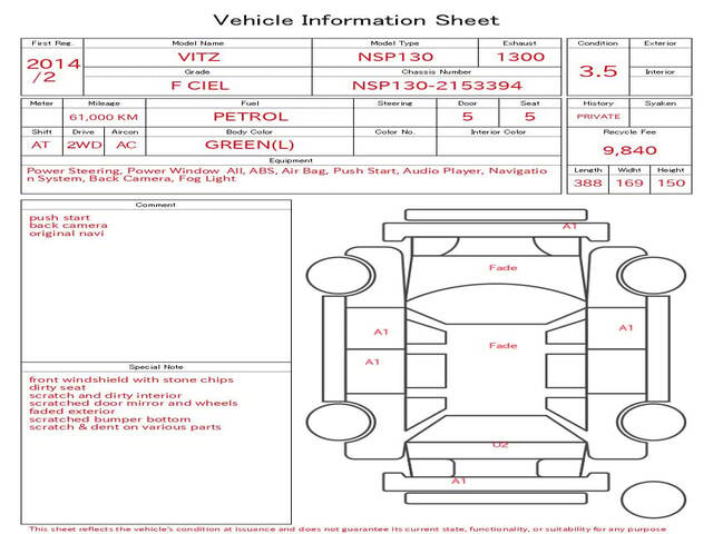 2014 TOYOTA VITZ ( YARIS) F CIEL