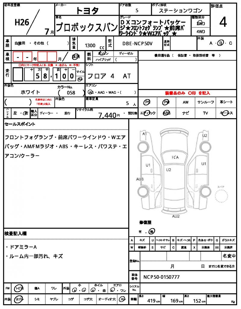 2014 TOYOTA PROBOX VAN