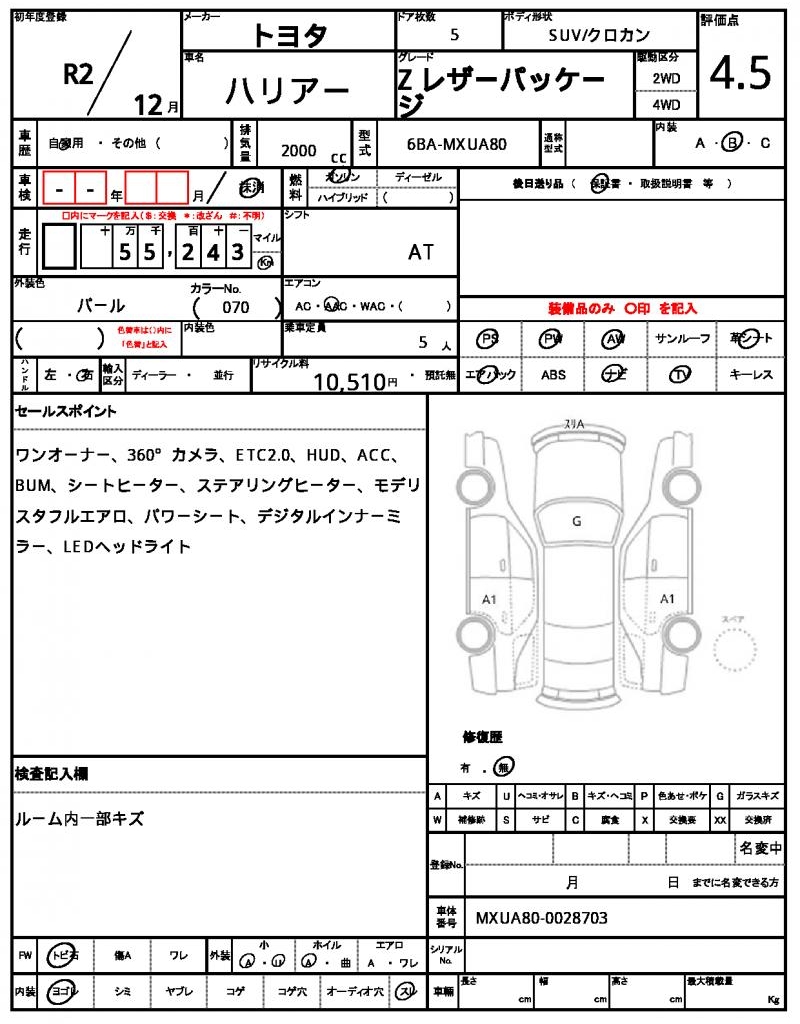 2020 TOYOTA HARRIER ( LEXUS RX300)