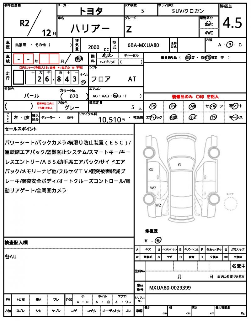 2020 TOYOTA HARRIER ( LEXUS RX300) Z