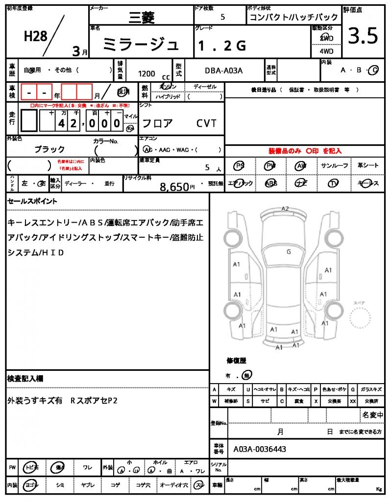 2016 MITSUBISHI MIRAGE