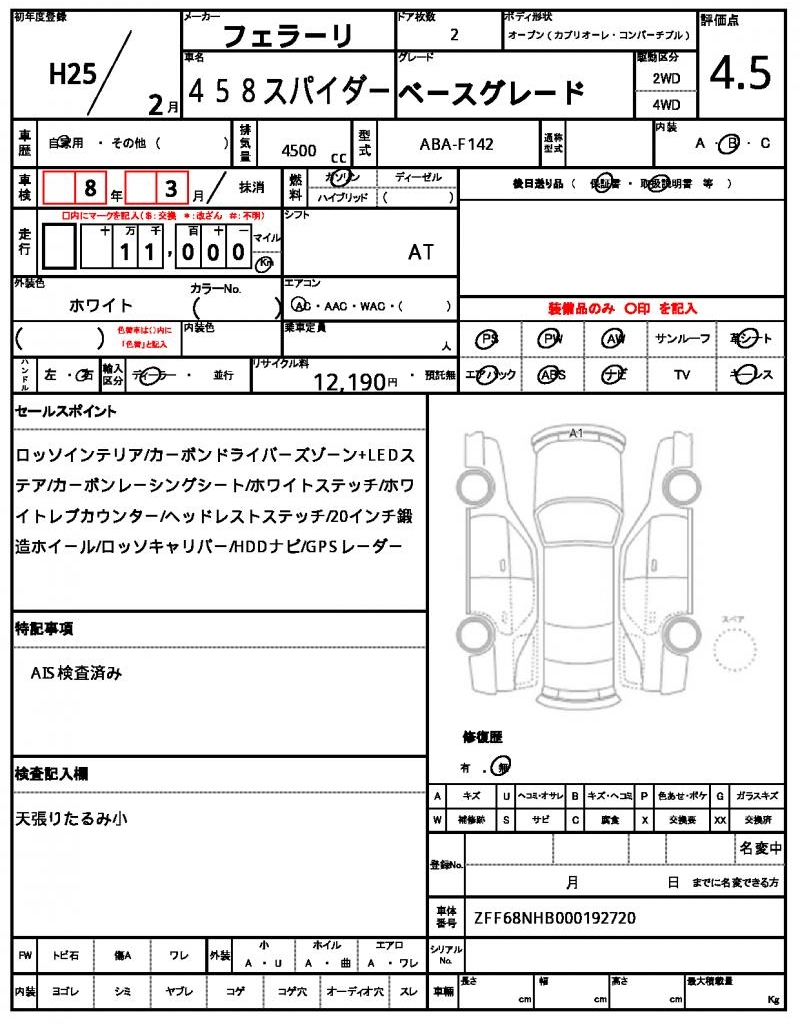 2013 FERRARI 458 SPIDER