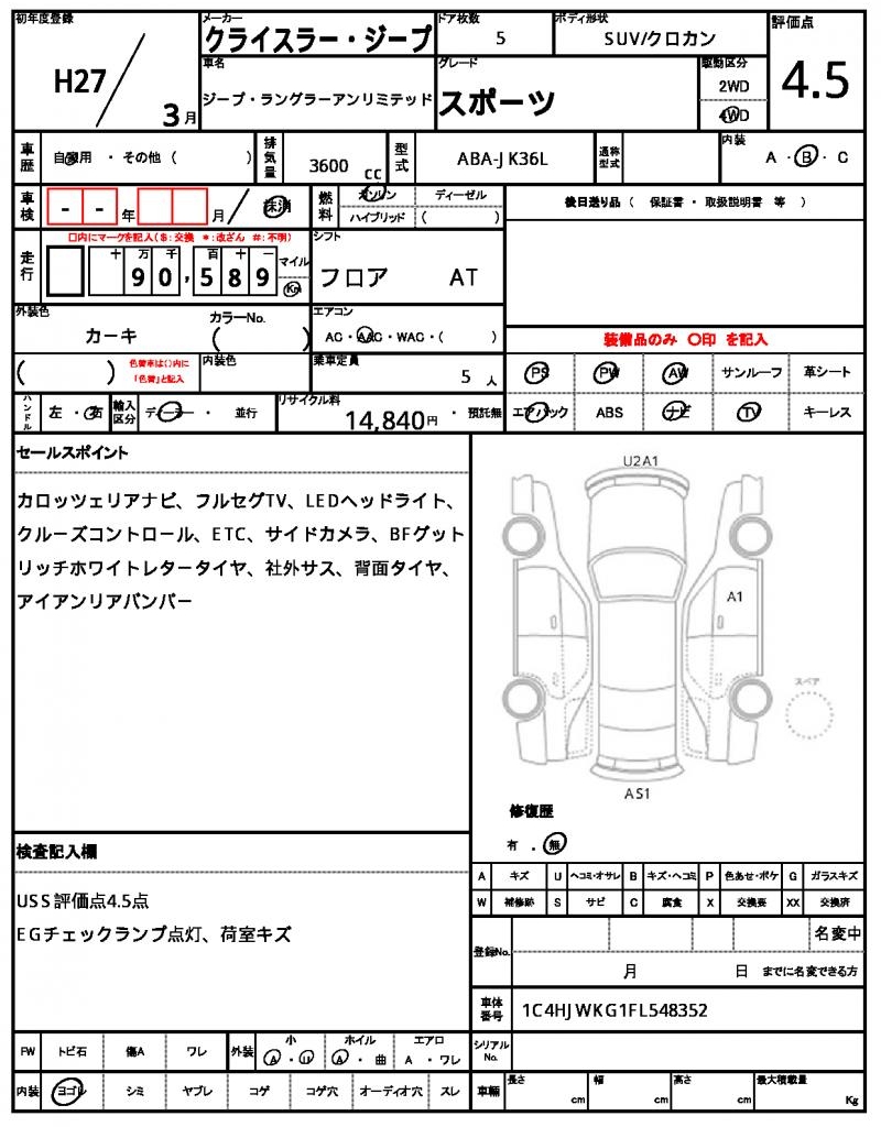 2015 CHRYSLER JEEP WRANGLER UNLIMITED