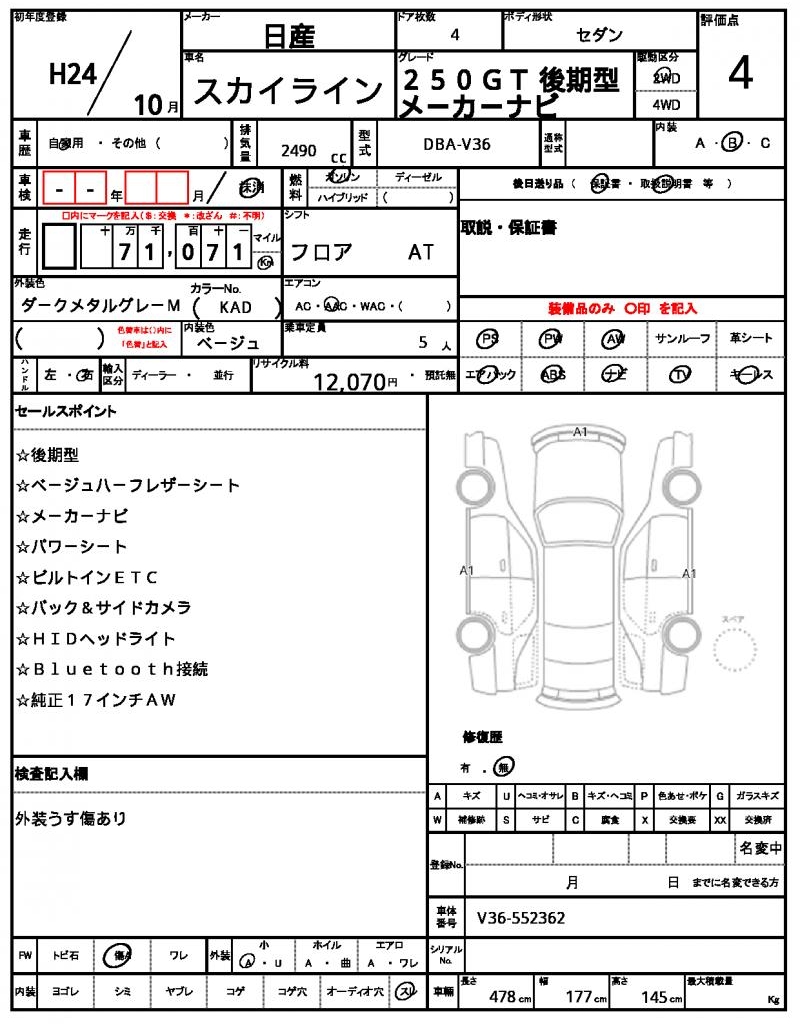 2012 NISSAN SKYLINE
