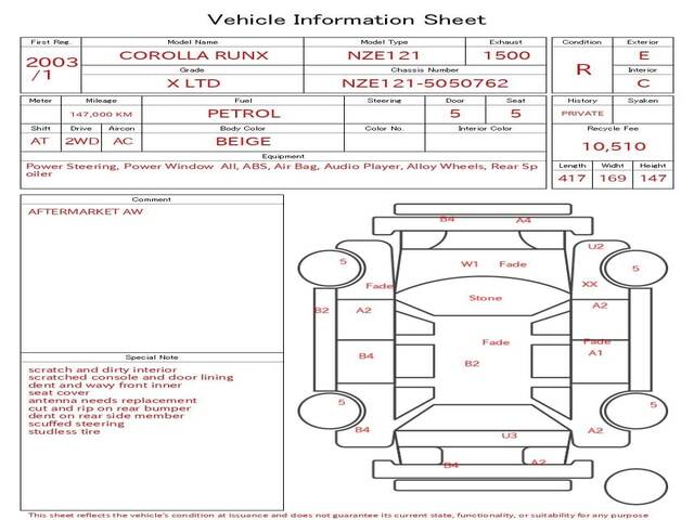 2003 TOYOTA COROLLA RUNX X LTD