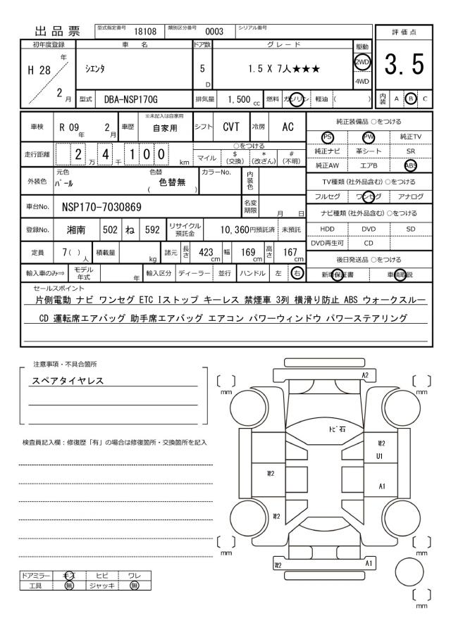 2016 TOYOTA SIENTA X