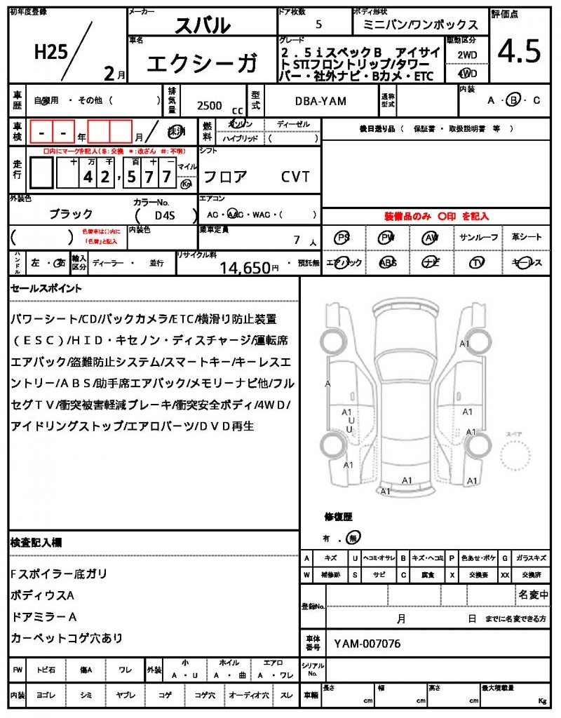 2013 SUBARU EXIGA