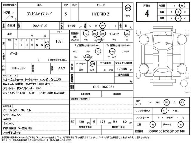 2014 HONDA VEZEL HYBRID Z