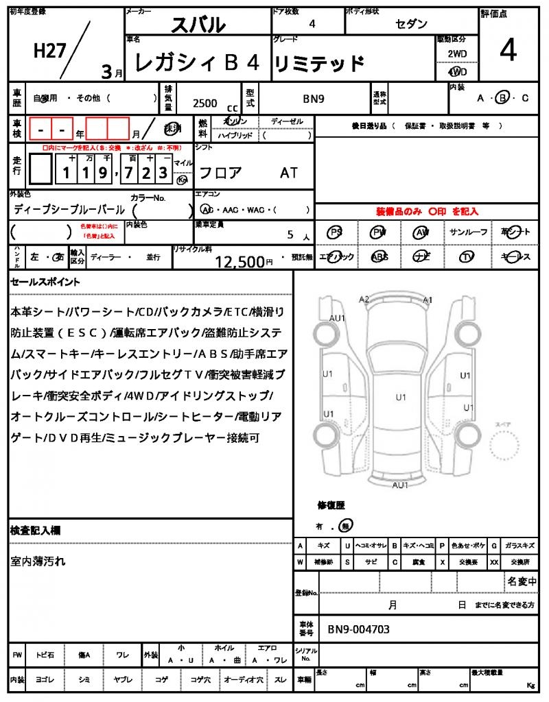2015 SUBARU LEGACY B4