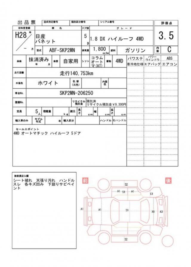 2016 NISSAN VANETTE VAN DX
