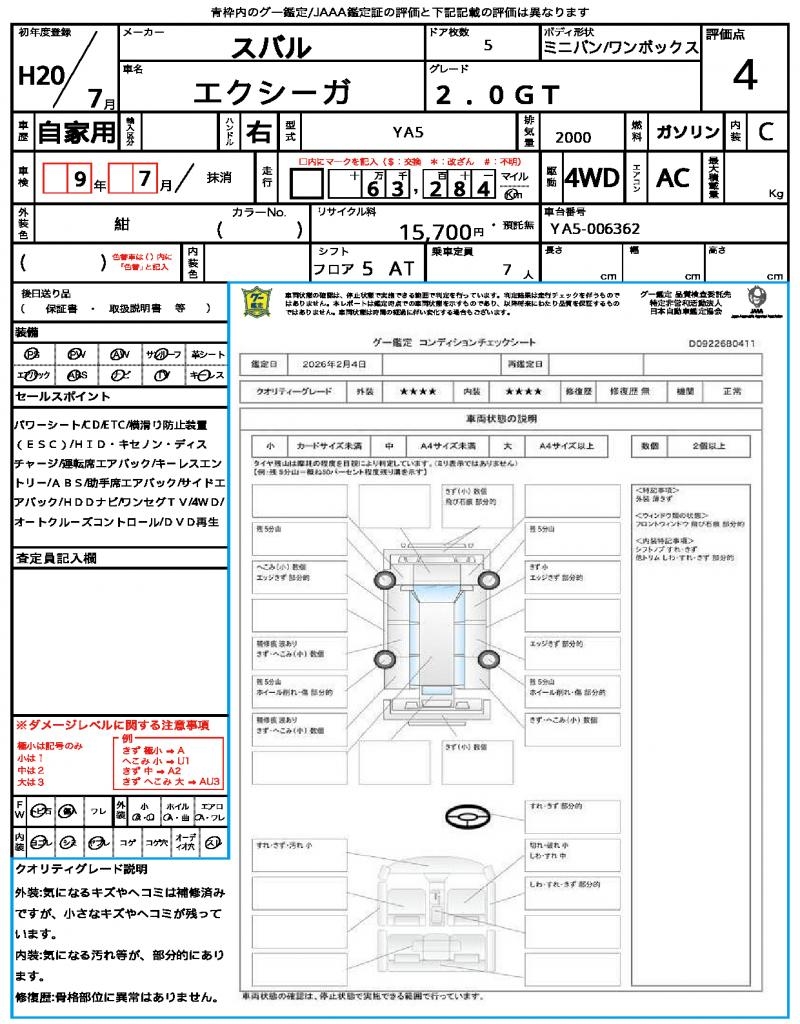 2008 SUBARU EXIGA