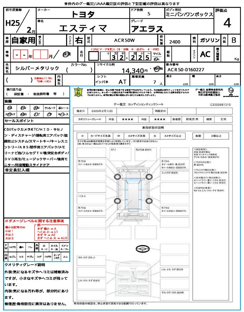 2013 TOYOTA ESTIMA ( PREVIA) AERAS