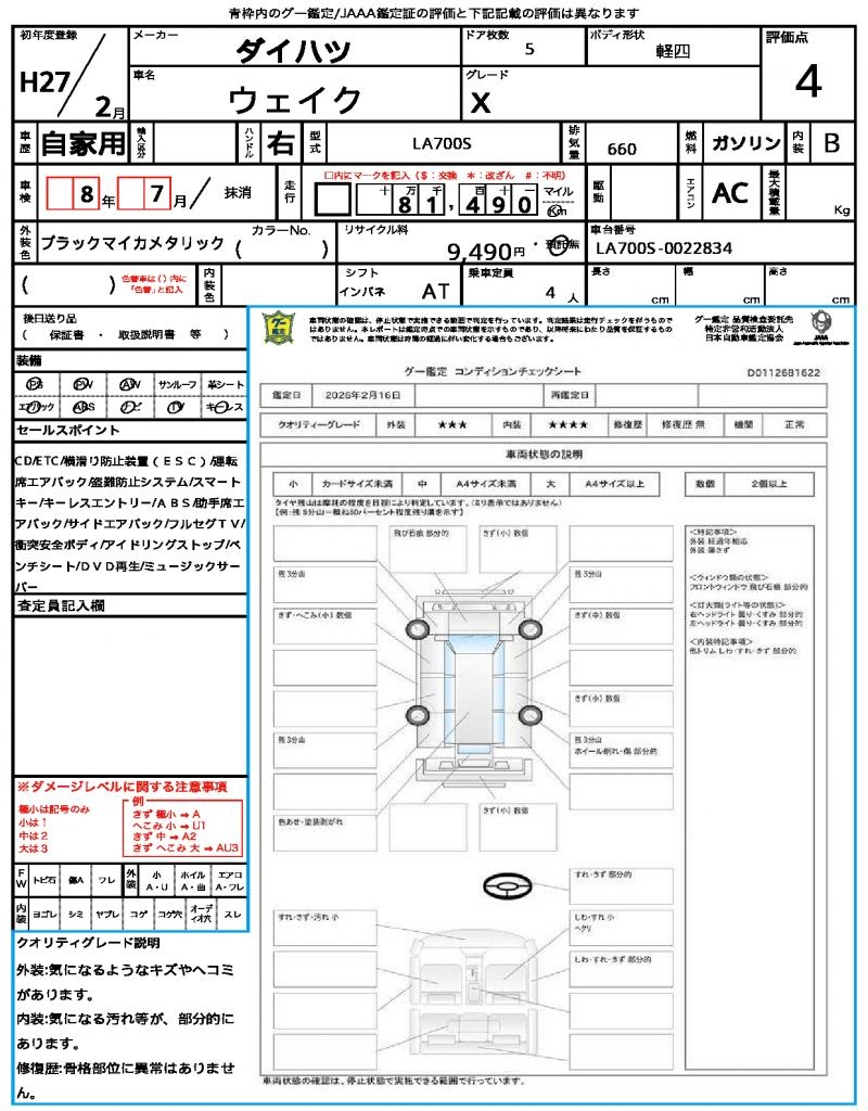 2015 DAIHATSU WAKE