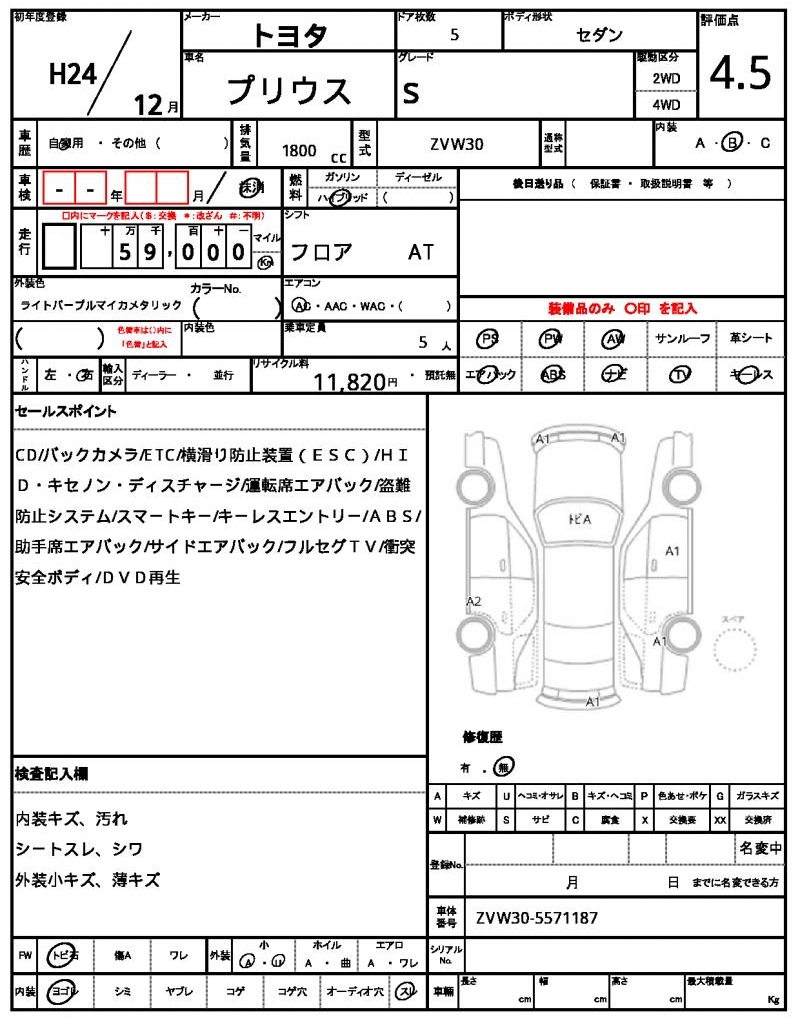 2012 TOYOTA PRIUS S