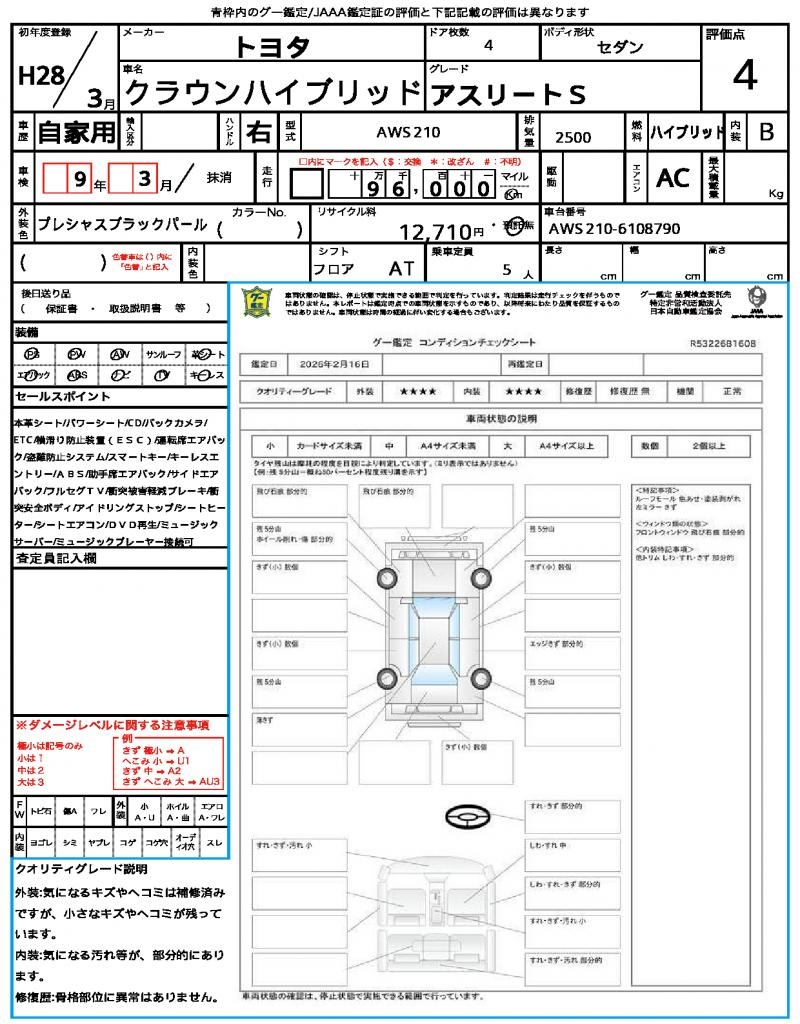 2016 TOYOTA CROWN HYBRID Athlete S