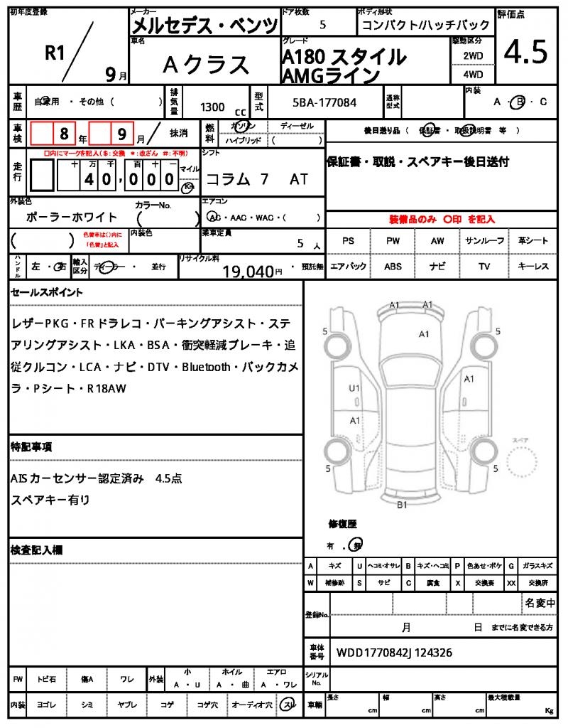 2019 MERCEDES BENZ A-CLASS