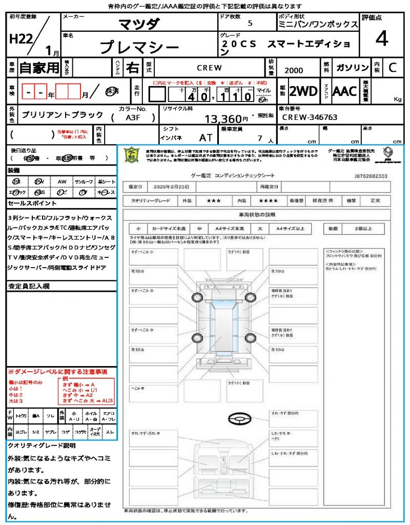 2010 MAZDA PREMACY ( MAZDA5) 20CS SMART EDITION