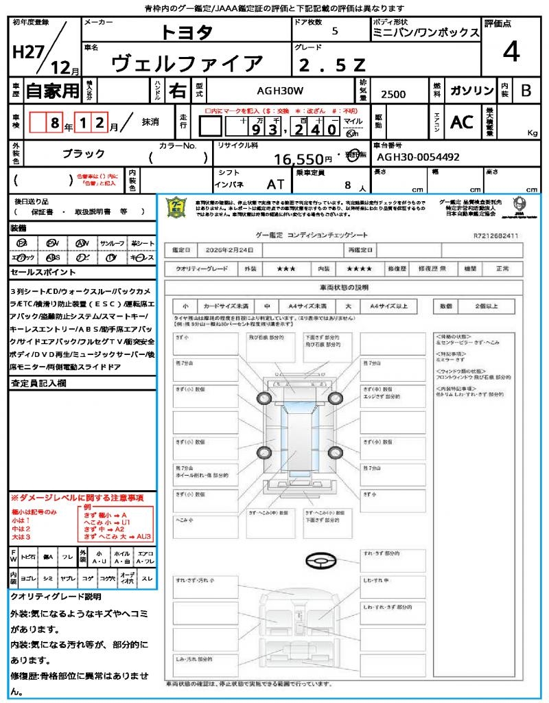 2015 TOYOTA VELLFIRE 2.5Z