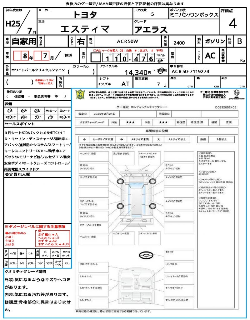 2013 TOYOTA ESTIMA ( PREVIA) AERAS
