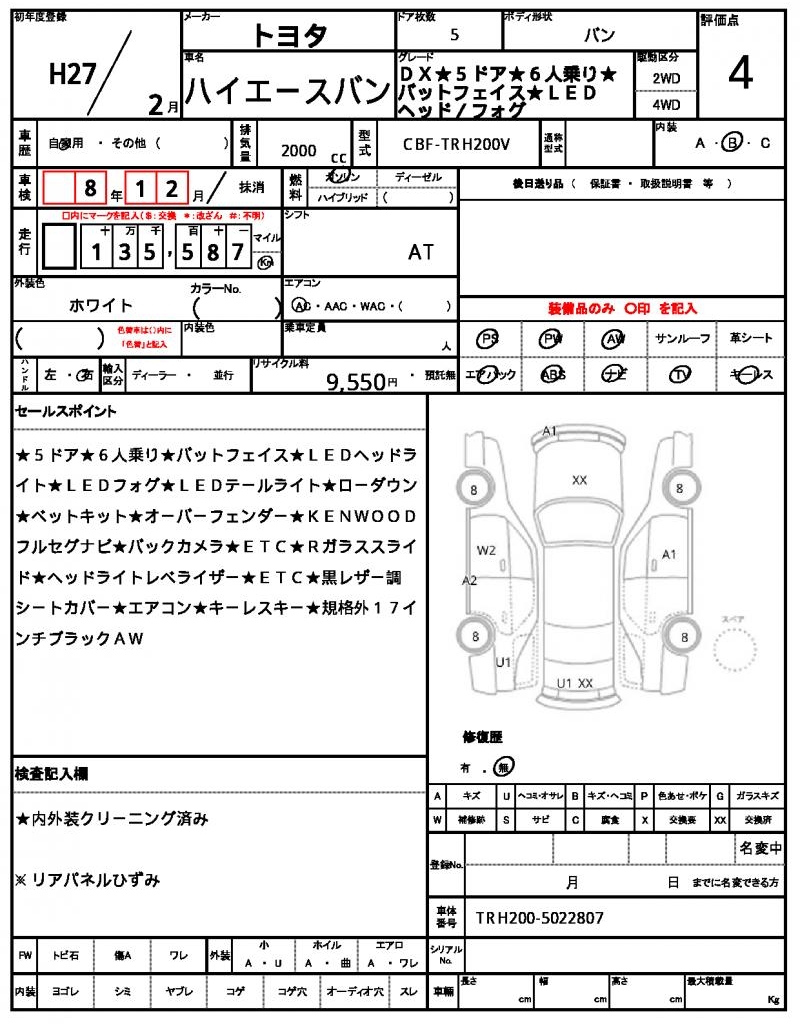2015 TOYOTA HIACE VAN