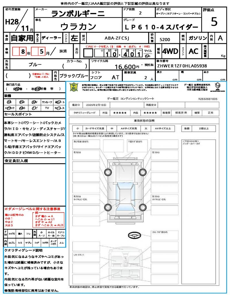 2016 LAMBORGHINI HURACAN (Left Hand Drive)