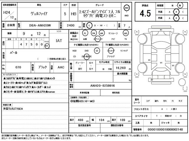 2012 TOYOTA VELLFIRE